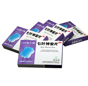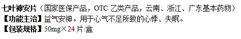 七葉神安片(國家醫(yī)保產(chǎn)品,OTC乙類產(chǎn)品,云南、浙江、廣東基本藥物) 【功能主治】益氣安神。用于心氣不足所致的心悸、失眠。 【包裝規(guī)格】50mg×24片/盒