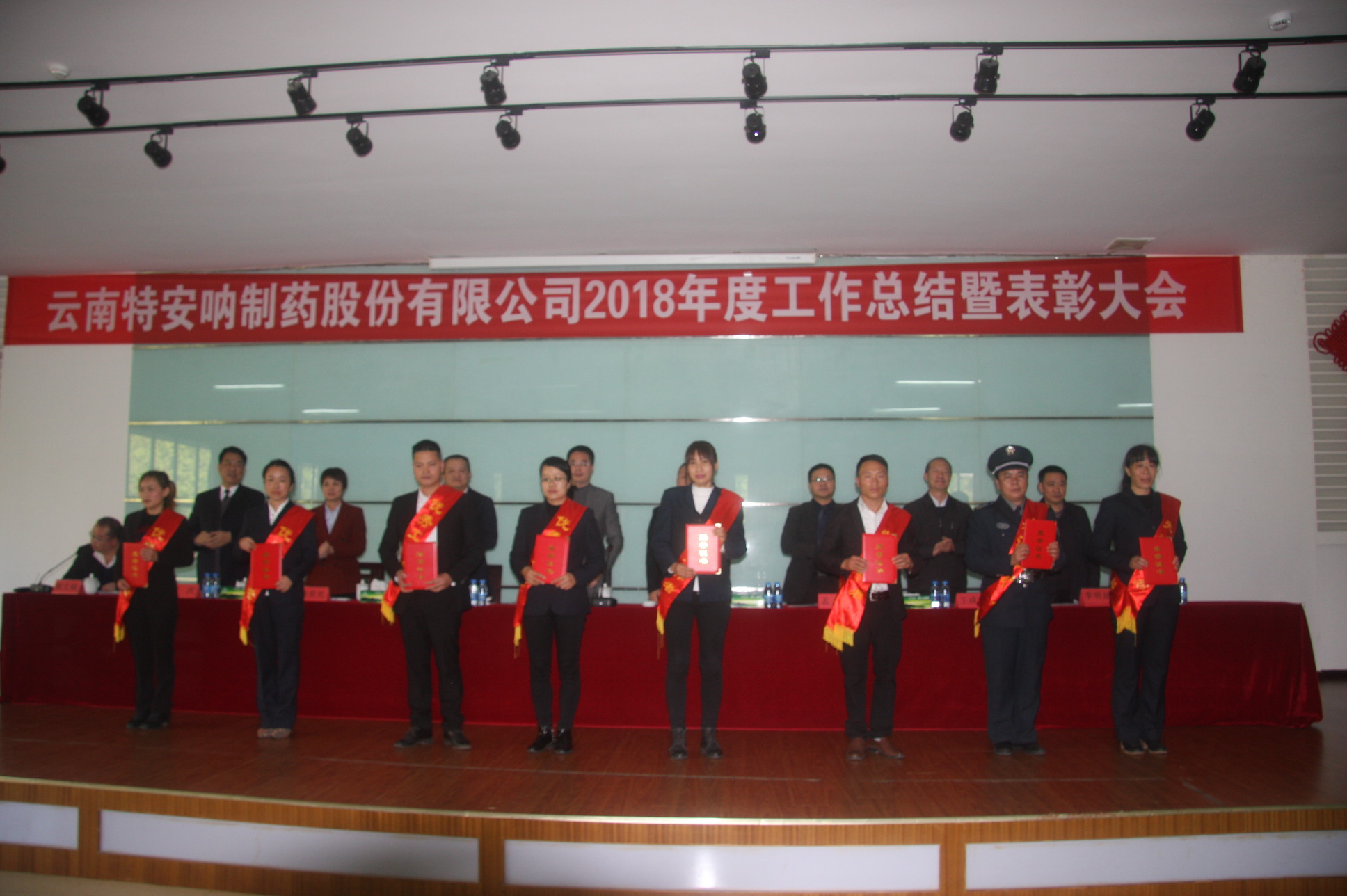2019年1月18日,特安吶公司召開2018年度工作總結(jié)暨表彰大會。會議總結(jié)了2018年度工作,并對2019年工作作出了安排部署。2018年公司各條戰(zhàn)線涌現(xiàn)出一批先進(jìn)帶頭人,他們腳踏實(shí)地、兢兢業(yè)業(yè)、勤奮工作,他們在崗位上揮灑汗水、沖鋒在前,平日里他們默默無聞、不求索取,他們大多來自生產(chǎn)一線,有的是操作工,有的是銷售人員,有的是保安人員,但卻在平凡的崗位上作出了不平凡的成績。1月18日晚,公司舉行了以“共勉、共享、共贏”為主題的2019年迎新晚會。晚會在樂鼓聲震天的舞獅舞中拉開序幕,文藝節(jié)目異彩紛呈,好戲一出接著一出,既有流行歌曲,又有民族地道唱腔;既有婉轉(zhuǎn)嘹亮的獨(dú)唱、合唱,又有勁爆熱辣的舞蹈。整臺晚會高潮迭起,掌聲經(jīng)久不息,真的是紅紅火火過大年,寓意著特安吶將迎來更加美好燦爛的明天!
