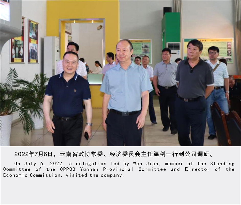 2022年7月6日,云南省政協(xié)常委、經(jīng)濟委員會主任溫劍一行到公司調研