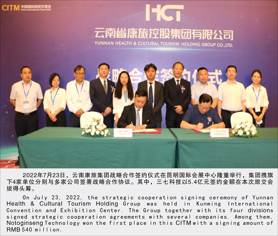 2022年7月23日,云南康旅集團(tuán)戰(zhàn)略合作簽約儀式在昆明國際會展中心隆重舉行,集團(tuán)攜旗下4家單位分別與多家公司簽署戰(zhàn)略合作協(xié)議。其中,三七科技以5.4億元簽約金額在本次旅交會拔得頭籌。