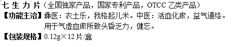 七 生 力 片(全國獨(dú)家產(chǎn)品,國家專利產(chǎn)品,OTCC乙類產(chǎn)品)