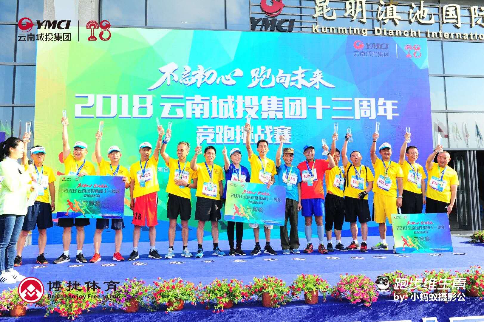 2018年4月28日,云南城投集團公司在昆明市滇池國際會展中心舉行13周年競跑挑戰(zhàn)賽,共有來自集團下屬29家公司的選手近千人參賽。本次比賽以“不忘初心、跑向未來”為主題,深入開展全集團體育健身運動,豐富廣大員工文化體育生活,提高全體員工身體素質,培養(yǎng)積極健康的道德情操,進一步提升集團凝聚力和團結協(xié)作精神,助推集團又好又快持續(xù)發(fā)展。比賽分13公里青年組、13公里中年組、4.28公里青年組、4.28公里中年組。特安吶公司員工王武山、沈定詠、姚先麗、張英敏、王道明等五人參加比賽。下午3時許,隨著集團公司黨委馮學蘭副書記的一聲發(fā)號槍響,參賽選手如潮水般向前沖去,這是一場體力與意志的比賽,只有咬緊牙關你才能堅持跑完13公里,有的人中途退場了,有的中暑暈倒了,有的摔倒了,但更多的人是繼續(xù)堅持向前跑。比賽經(jīng)過一個多小時的激烈角逐,我公司參賽選手沈定詠獲得中年男子組4.28公里一等獎,姚先麗獲得中年女子組13公里一等獎,王武山獲得中年男子組13公里二等獎。