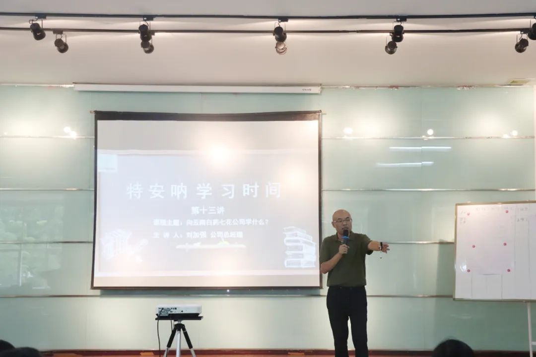 為對標一流、追趕先進,做到學有所思、思有所悟、悟有所行、行有所效,鞏固和拓展外出參觀學習成果。2023年6月15日特安吶公司利用“學習時間課堂”開展參觀云南白藥七花公司后的交流分享,特安吶公司部分高管、中層干部、部門骨干及業(yè)務部門相關人員以小組互動的形式參加了此次學習。