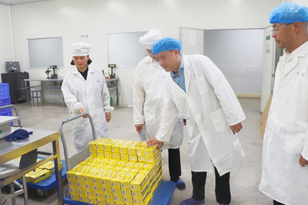 黃波分別來到原料倉庫、成品倉庫、綜合包裝車間、制劑車間,深入了解產(chǎn)品存放、設備運行、安全生產(chǎn)、人員管理等情況,并聽取了相關(guān)負責人對現(xiàn)場管理、生產(chǎn)工藝、質(zhì)量管理等方面情況介紹。