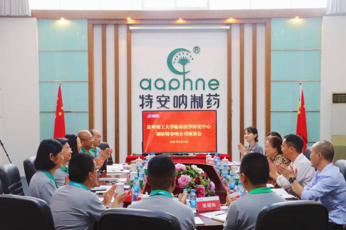 云南省第一人民醫(yī)院血液科主任楊同華、副主任胡芃,昆明理工大學(xué)王福平博士、邵瑞飛博士、徐嘉昕博士,特安吶公司副總經(jīng)理鄭傳云、唐繼榮,總經(jīng)理助理宣光玉,公司綜合辦公室、技術(shù)開(kāi)發(fā)部、質(zhì)量管理部、生產(chǎn)管理部負(fù)責(zé)人參加座談。