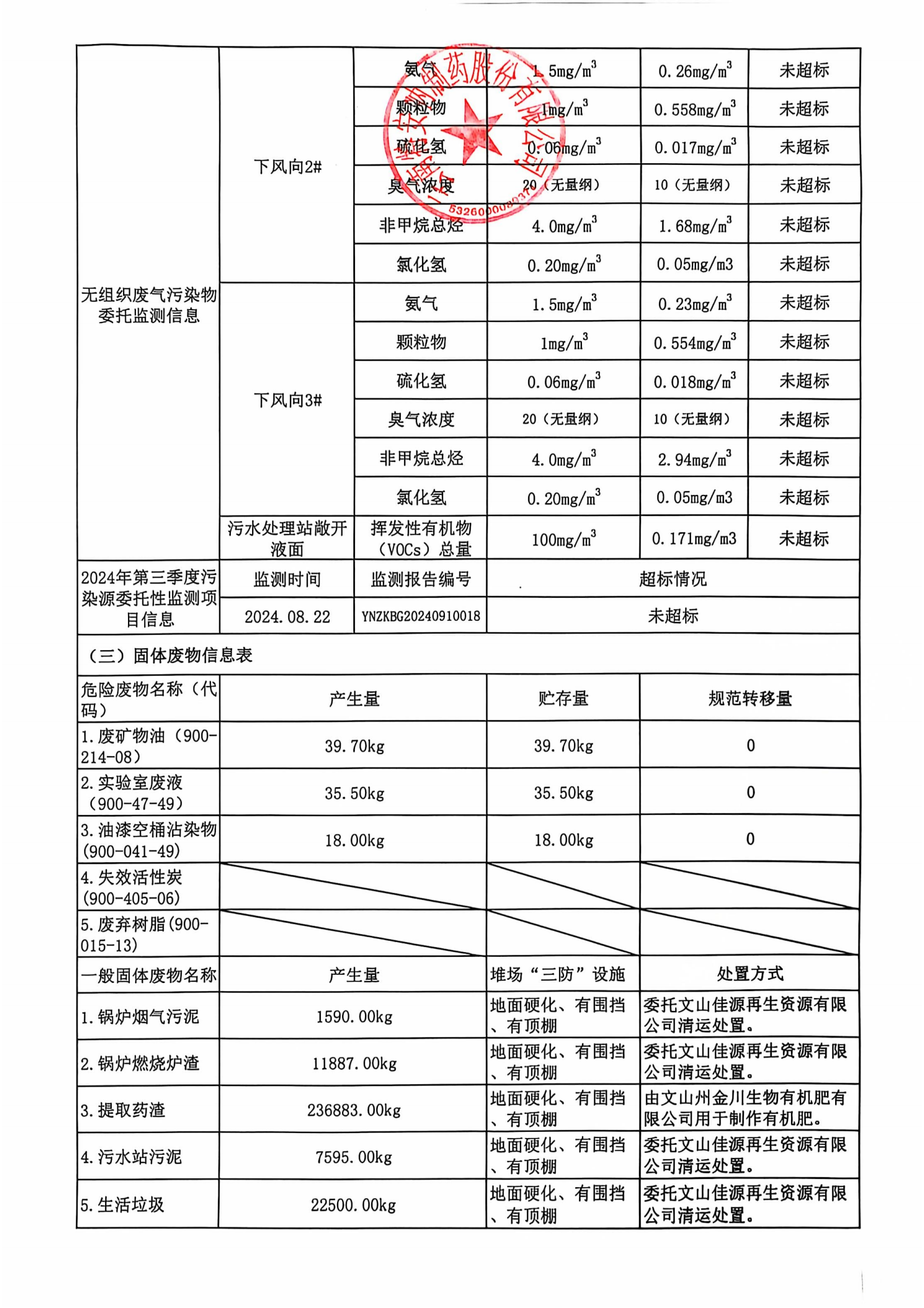 2024年第三季度云南特安吶制藥股份有限公司環(huán)境信息公開表