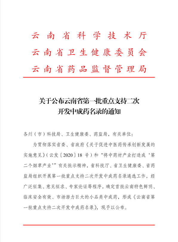 近日,經(jīng)過嚴格的篩選與評審,我公司獨家產(chǎn)品——丹參益心膠囊,榮幸入選了《云南省第一批重點支持二次開發(fā)中成藥名錄》!這一殊榮不僅是對丹參益心膠囊的高度認可,更是對特安吶公司在制藥領(lǐng)域長期耕耘與創(chuàng)新的肯定與鼓勵。